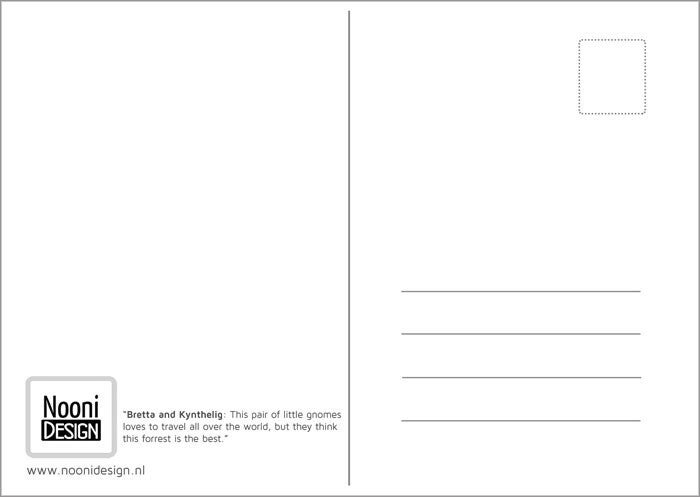 Kaart van reisduo Bretta en Kynthelig. Deze kleine kaboutertjes houden er van om rond de wereld te reizen, maar ze vinden dit bos wel het mooiste. Foto's zijn gemaakt in het noorden van de Veluwe in Nederland door Nooni Design.