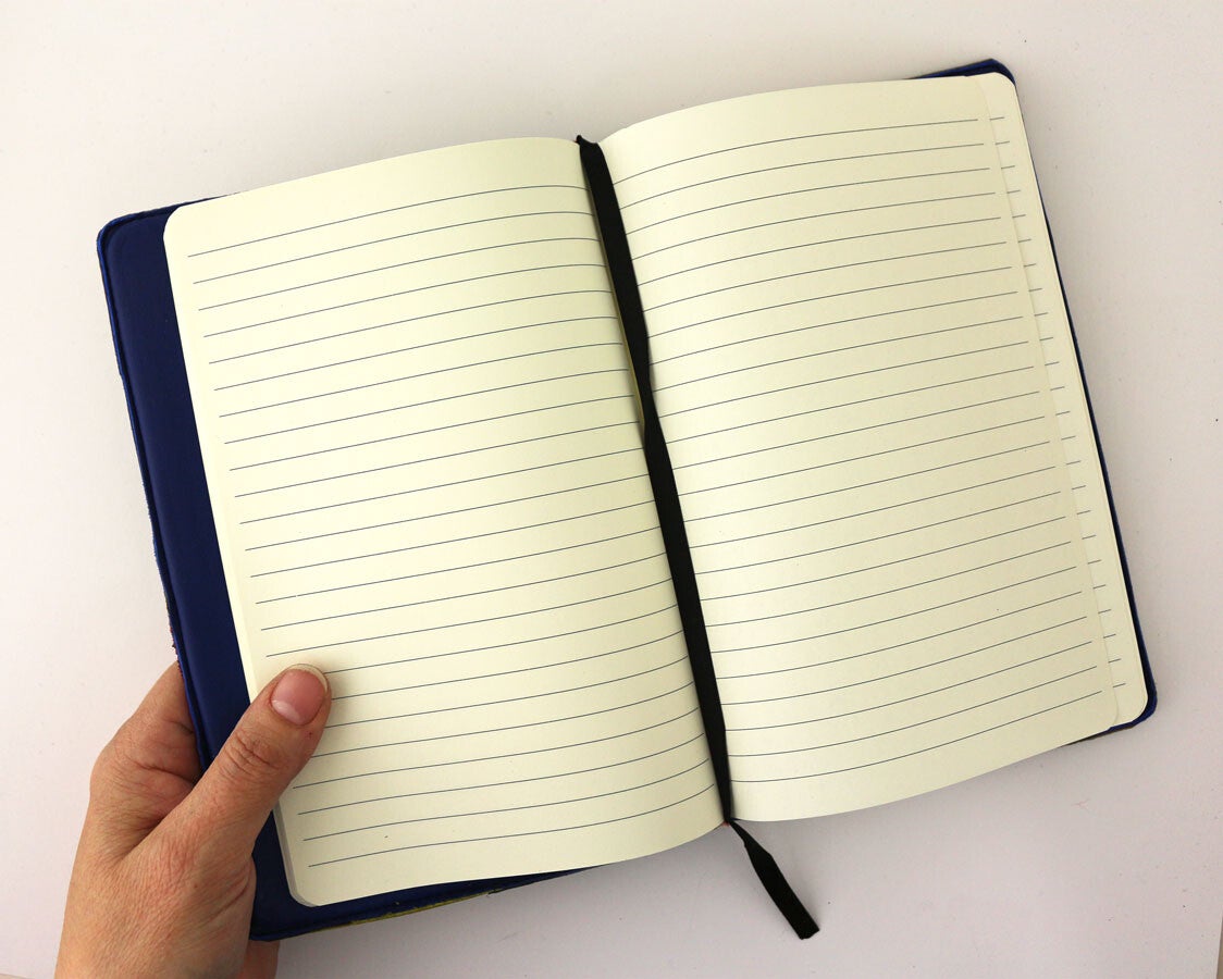 Stevig notitieboek, met gelinieerde bladen, perfect als bijvoorbeeld dagboek, journal of inspiratieboek. De kaften van deze notitieboeken zijn gemaakt van gerecycled leer.