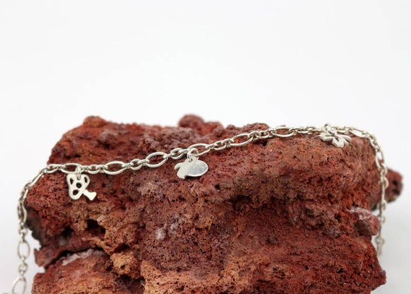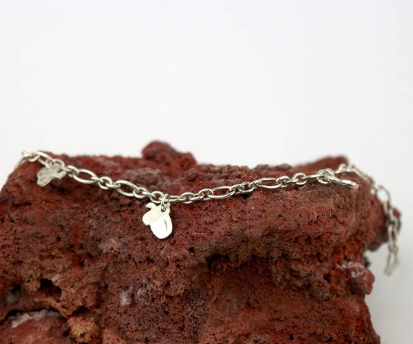 Dit bedelarmbandje is gemaakt van eerste gehalte zilver. Het bevat drie bedeltjes in herfstthema: een paddenstoel, een eikeltje en een esdoornblad. Aan het uiteinde is een klein eikeltje bevestigd. De ketting betreft een sier-ankercollier, met een ovaal oogje om de 1,2 cm, en een karabijnhaaksluiting. Het armbandje is hoogglans afgewerkt. .