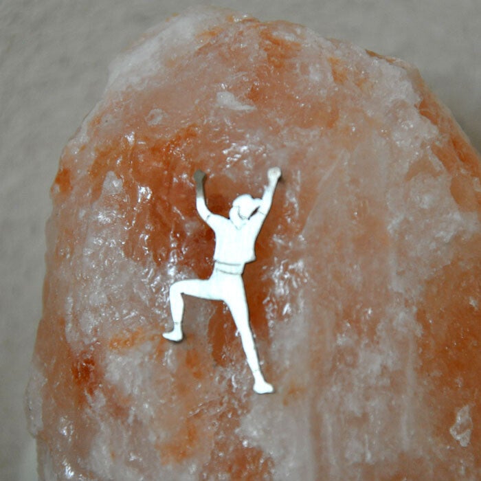 Het silhouet is gemaakt van alpaca en is met de hand uitgezaagd. Het silhouet is stevig bevestigd in de zoutsteen. Een prachtig, sfeervol lampje, bijvoorbeeld voor op de kinderkamer. En een 'must-have' voor de ware klimmer!