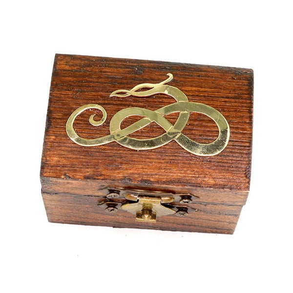 Dit luciferdoosje heeft een metalen silhouet van een keltische draak er op afgebeeld. Het metalen silhouet is gemaakt van alpaca en ragfijn met de hand uitgezaagd. Door middel van kleine (aan de achterkant er op gesoldeerde) pinnetjes is het silhouet stevig verankerd in het dekseltje.