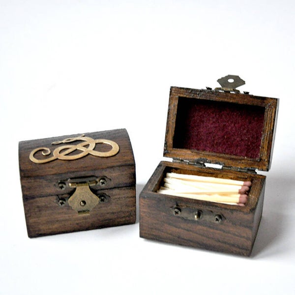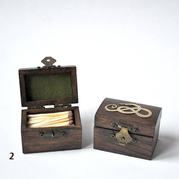 In het schatkisje zitten zwaluw-lucifers (4,8 cm lengte). De afmetingen van het doosje zijn (lxbxh) 6 bij 6 bij 4 cm.