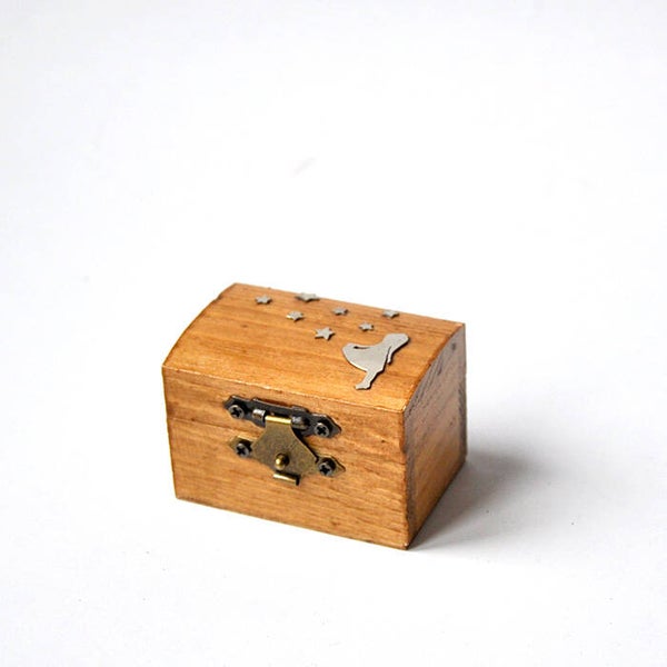 In het schatkisje zitten zwaluw-lucifers (4,8 cm lengte). De afmetingen van het doosje zijn (lxbxh) 6 bij 6 bij 4 cm.
