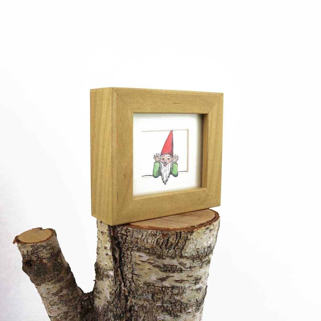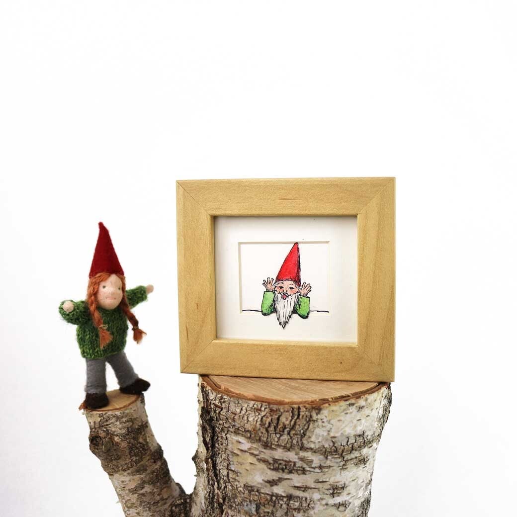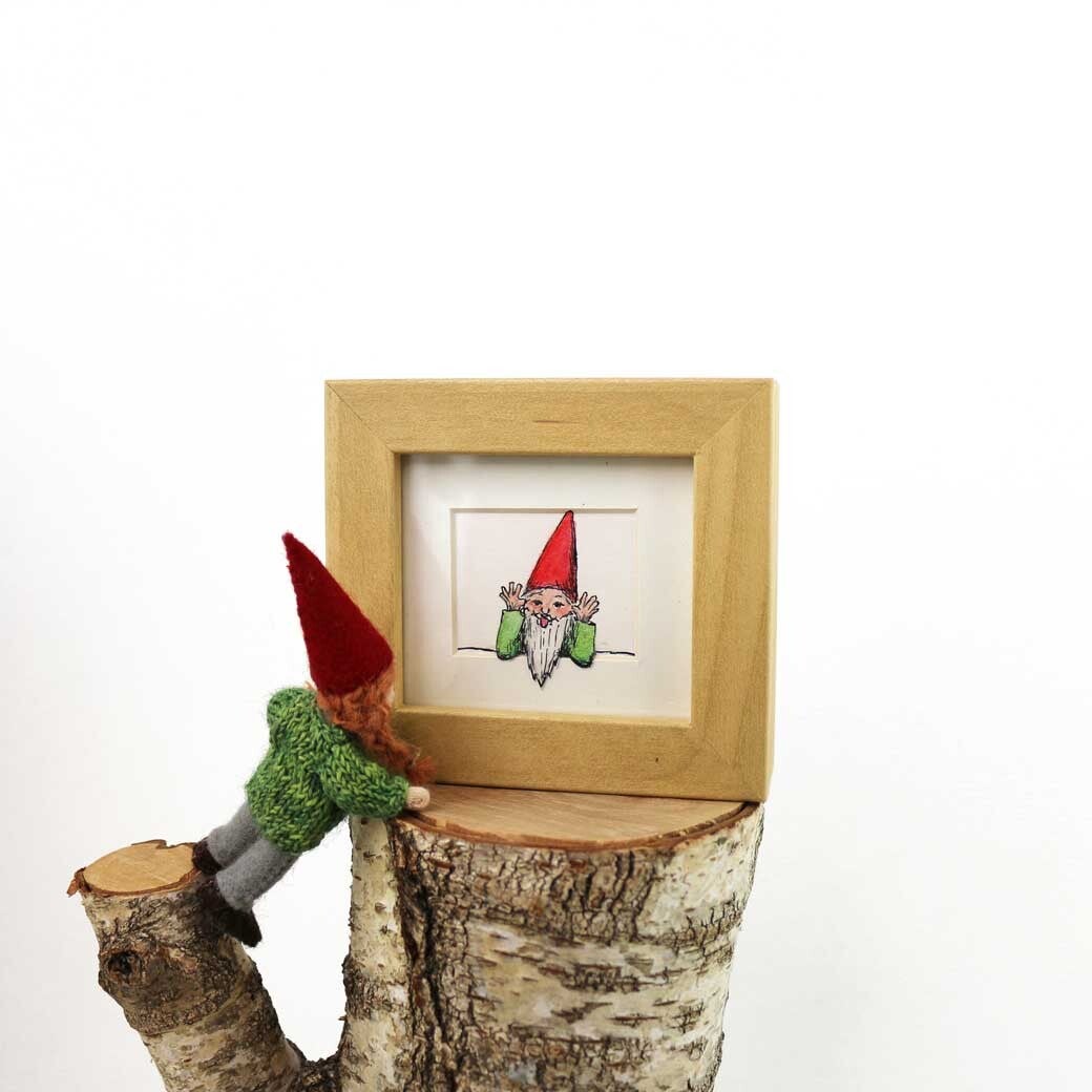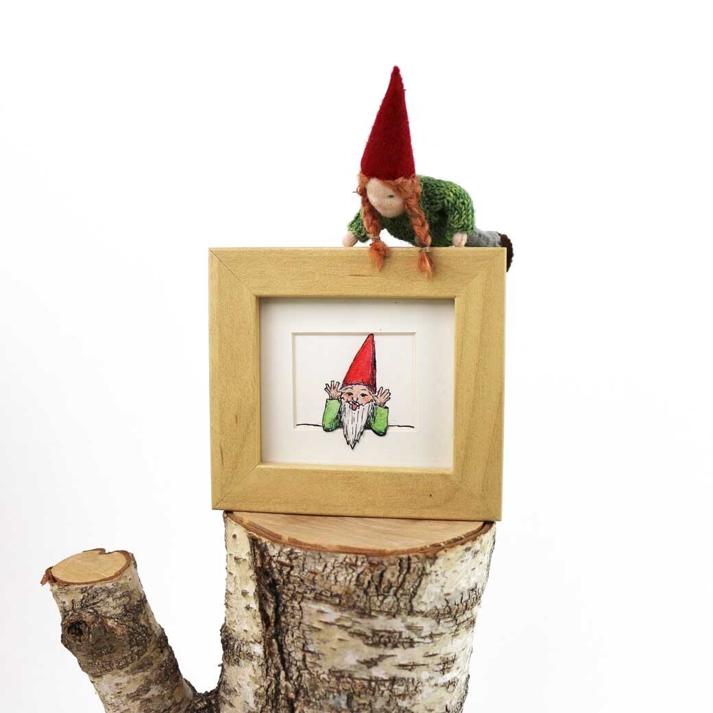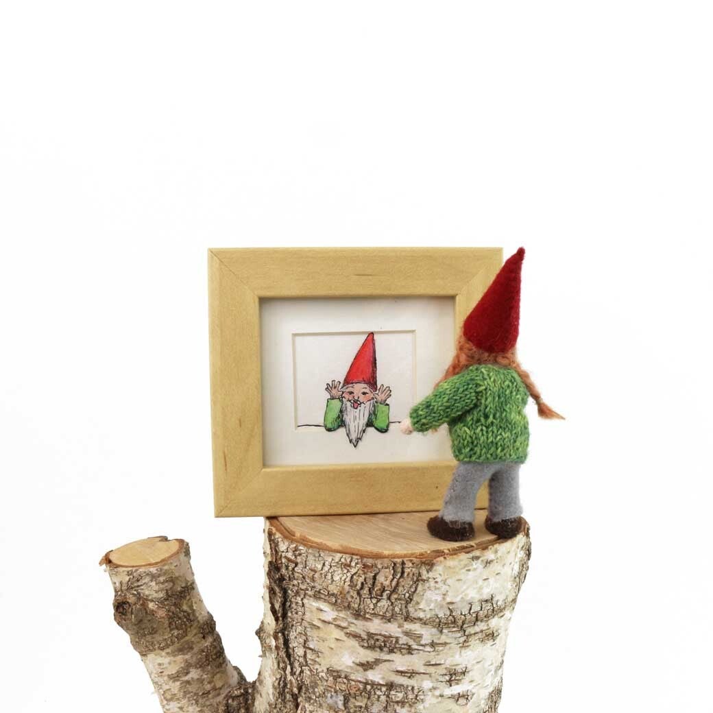 Dit grappige kaboutertje trekt een lange neus en zou het liefste uit het lijstje kruipen om grapjes uit te halen.