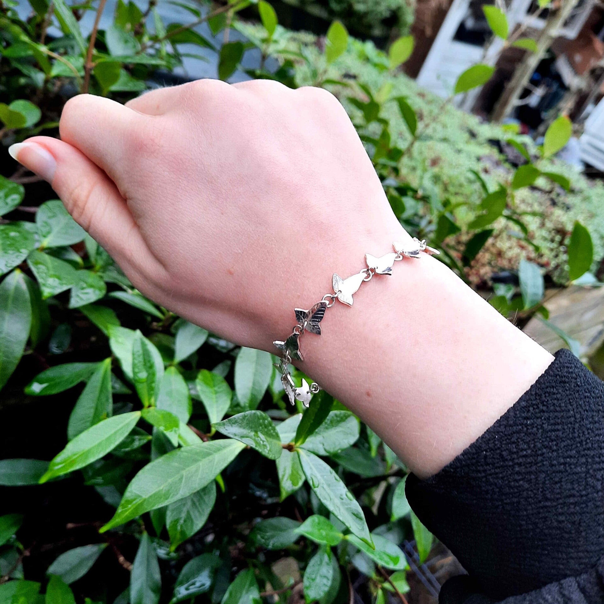 De totale lengte van de schakelarmband is 18,5 cm en is afgewerkt met een karabijnhaaksluiting.
